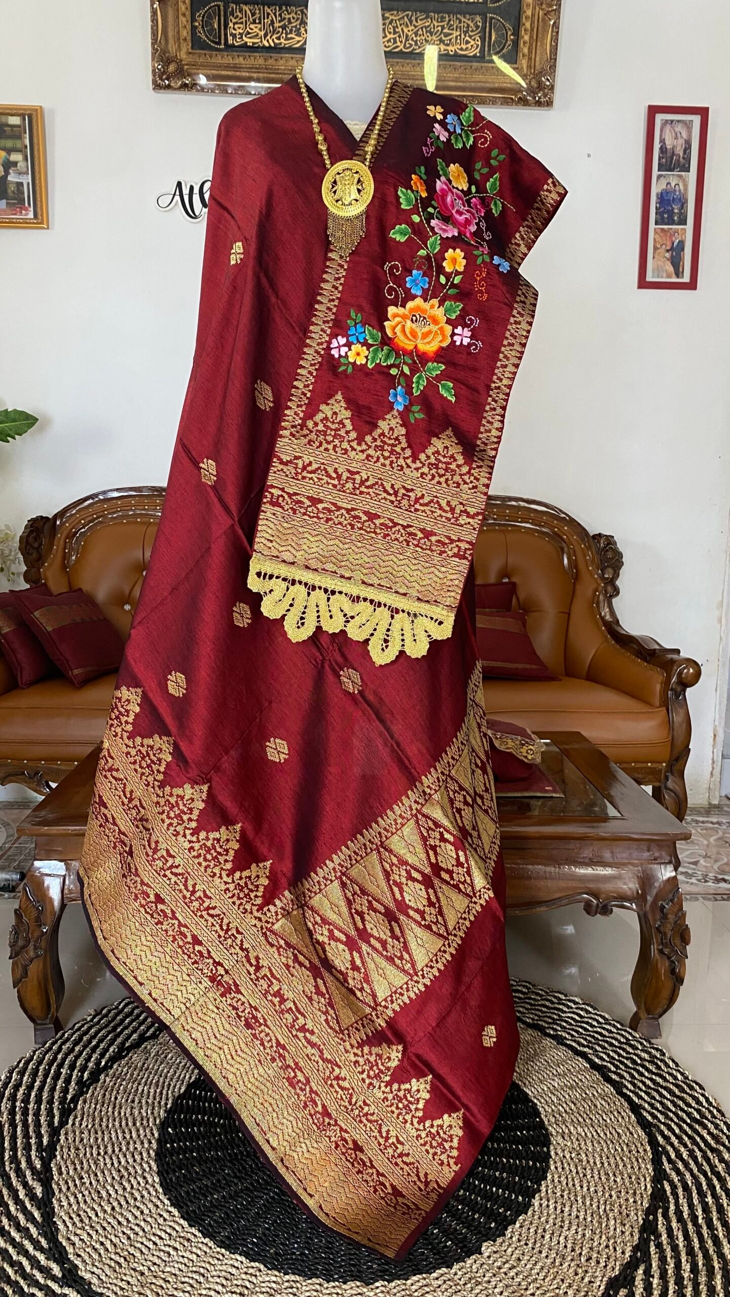 Selendang dikombinasikan Dengan Suji Cayia Koto Gadang Dengan Keterampilan Sulaman Mesin